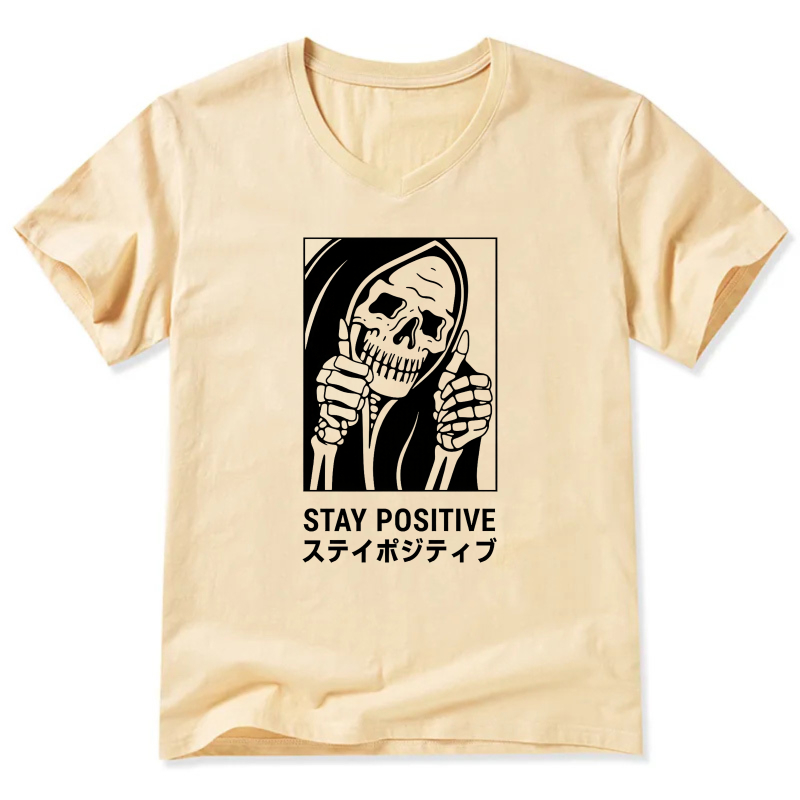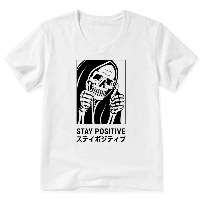 Stay Positive Skull Graphic T-Shirt Black Men Women Casual Wear